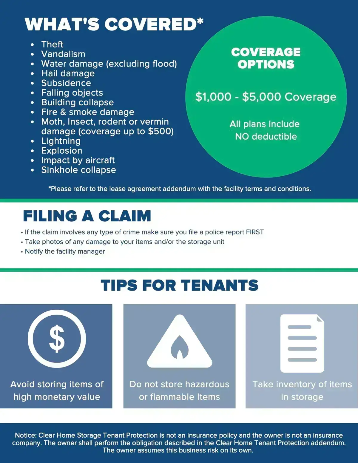 ClearHome Self Storage Protection Plan